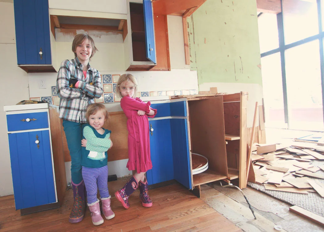 These three munchkins are taking it all in as well...in their own way. Bella has been an amazing help in the demolition process. Lucy and Emma spend their time playing hide-and-seek in empty closets and chasing the dogs.