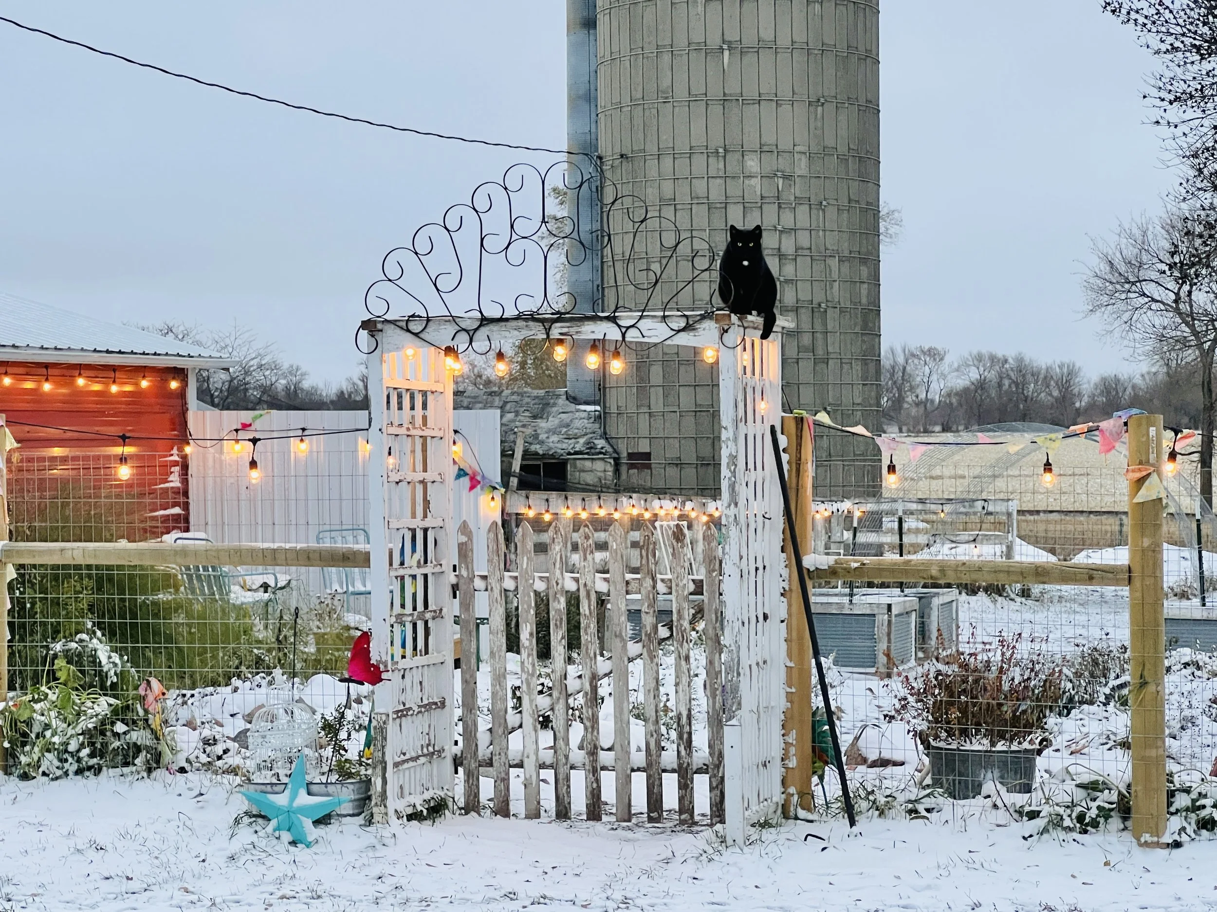 Snow: Our very first snow came in with a roar! We had 50 mph winds and a few inches of snow…just enough to get the sled out and make it pretty for awhile!