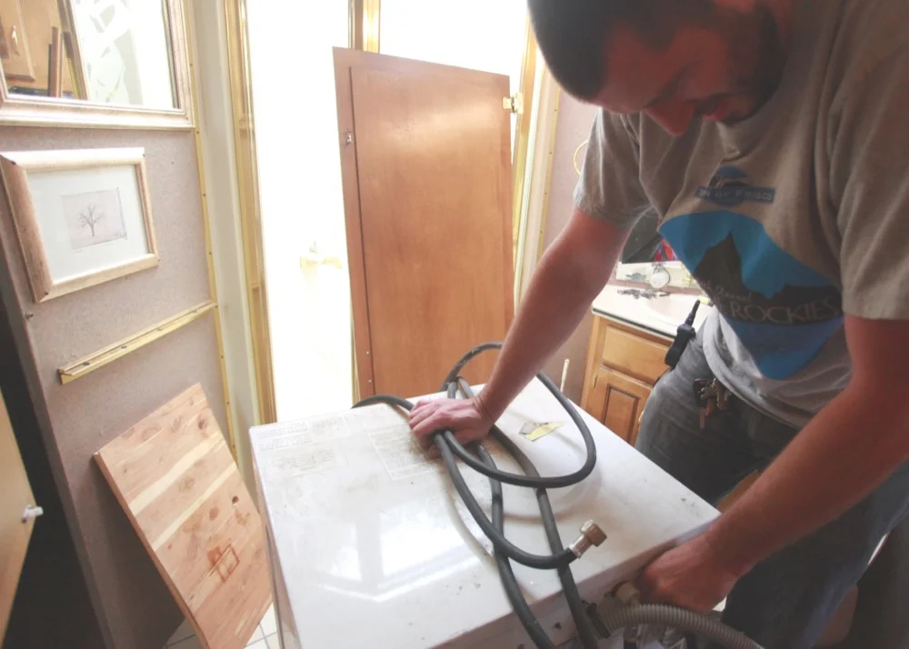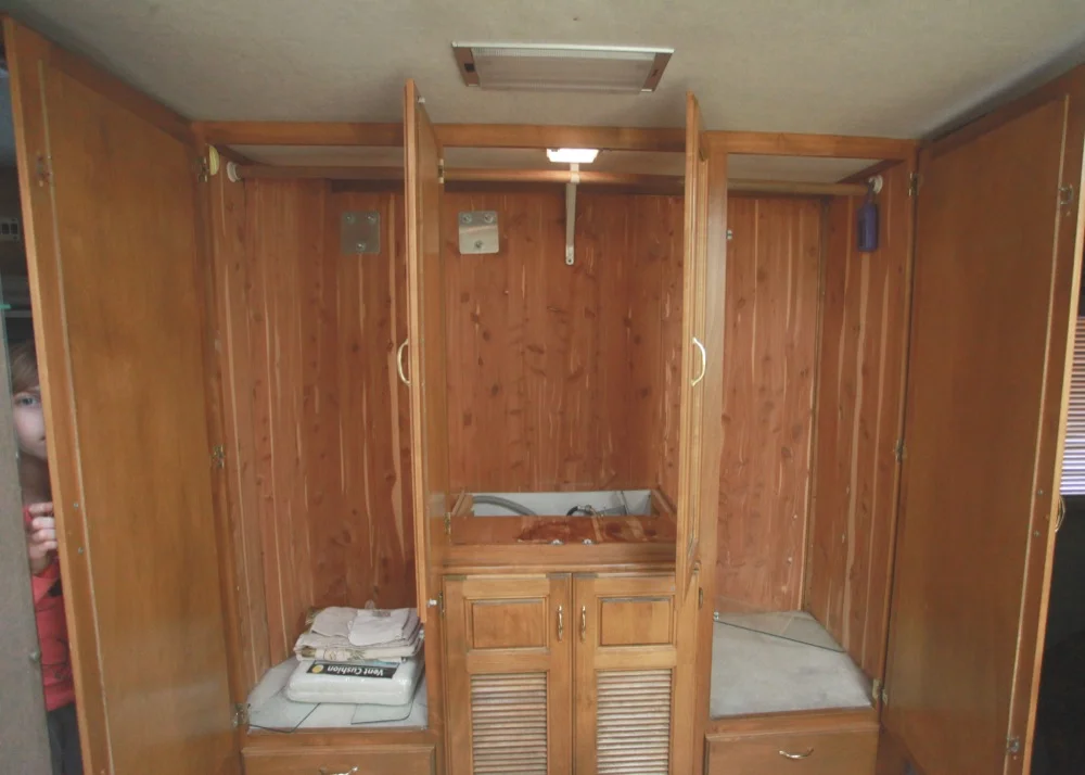 We removed the old model all-in-one Splendid washer and dryer. We will take it to Resource in Boulder for someone else to love. Bunk space was definitely more important than laundry...especially because we won't be living in the RV full time.