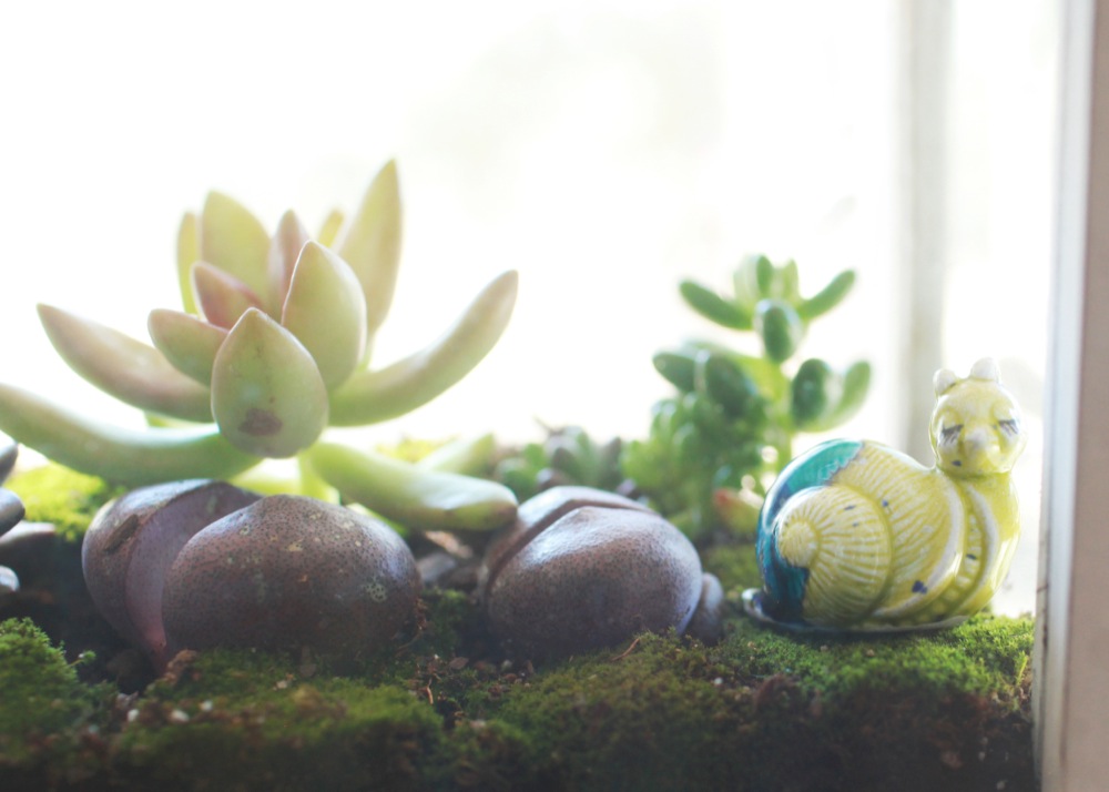 Let's talk a bit about watering. Resist the urge! The number one reason terrariums fail is due to root rot and the moisture level being too high. If you're using a closed terrarium, there is the possibility that you may not need to water at all because it becomes it own little ecosystem. With open terrariums, you can water them...but cautiously. With succulents, wait until they have completely dried out to water again. Start slow and pay attention to what your plants are telling you!