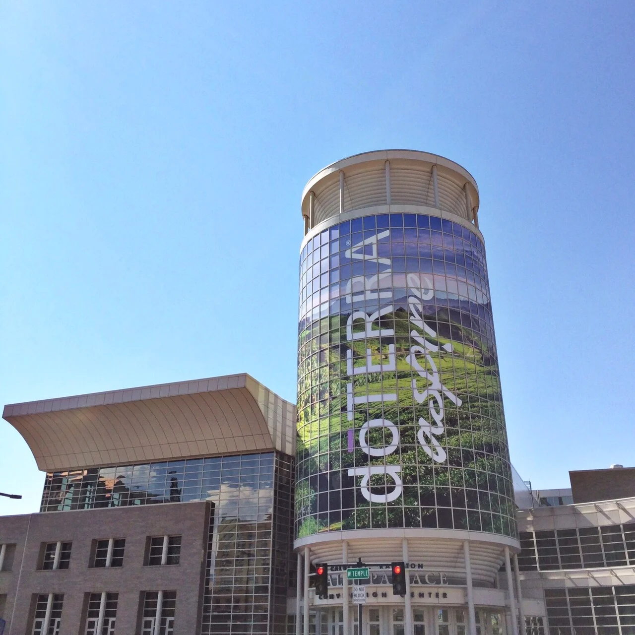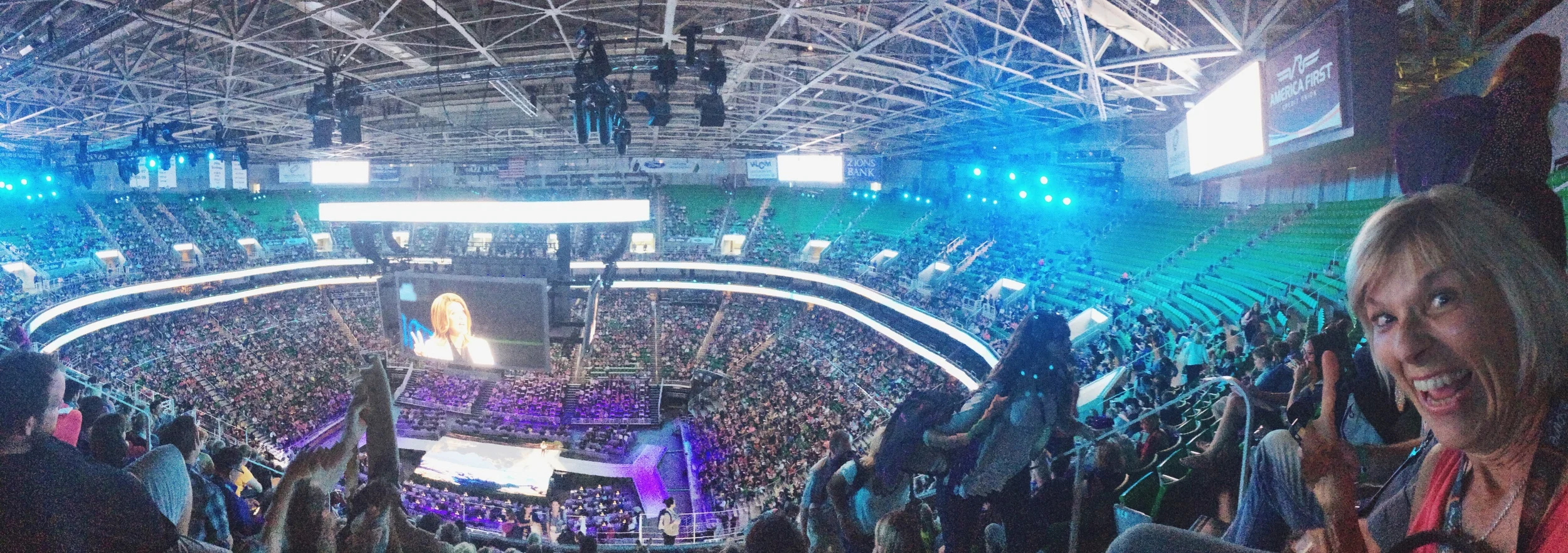 First of all...how cute is my mom and her funny panoramic distorted finger?! LOL! Now...the typical day. You will be up early in the morning to get your seats. Doors usually open 2 hours ahead of time. Silvers and up can get in the "secret" entrance around the south side...before everyone else gets in. It's generally not encouraged to save large blocks of seats...but a handful should be fine! I would recommend staying at eye level with the screen you you aren't looking up all day. And if you get too high up, the sound is harder to hear.